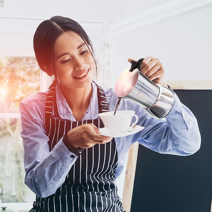 LuxHaus Moka Pot - 9 Cup Stovetop Espresso Maker - 100% Stainless Steel Italian and Cuban Mocha Coffee Maker